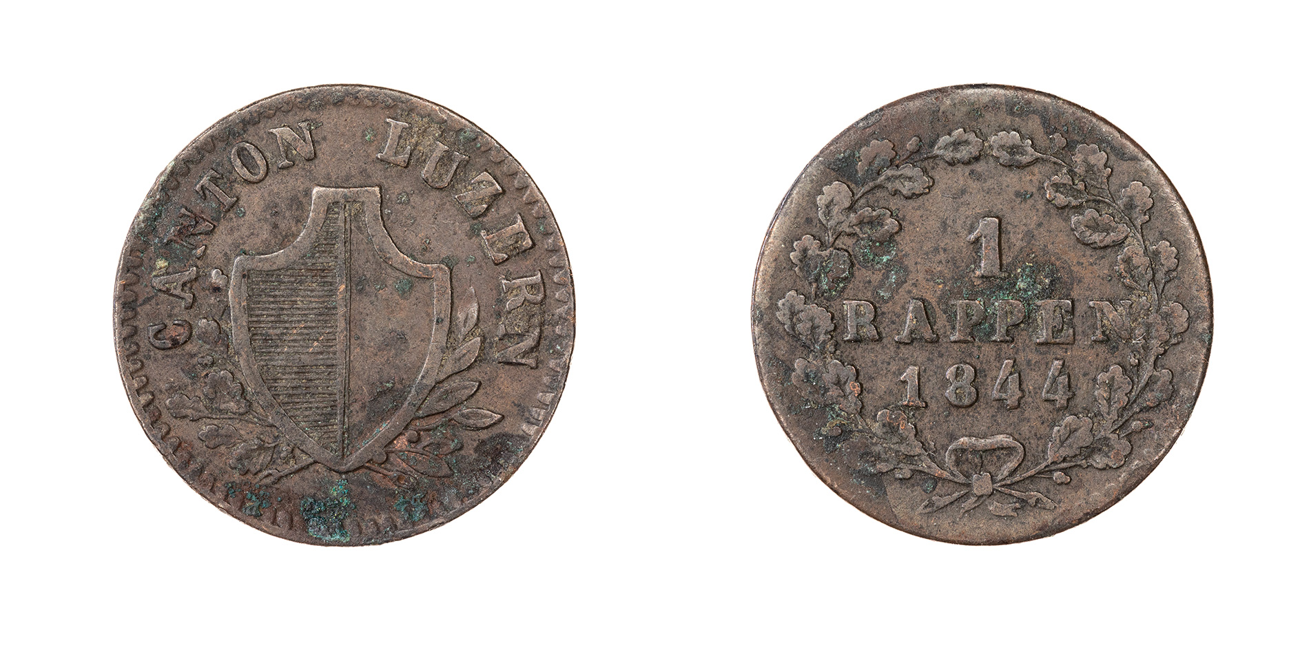 Collection Monnaies et médailles Item Pièce de un rappen, 1844 Document 1 rappen, 1844 Download Metadonnées Thumbnail Description1 rappenDénominationPièce de un rappen, 1844Année1844Autorité émettriceCanton de LucerneAtelier monétaire-Poids1,19 gDimensions (hauteur / largeur)16,72 mmÉpaisseur0,78 mmOrientationMonnaie (tête-bêche)CompositionCuivreRéférencesDivo-Tobler 1969, n°72Frappe-RemarquesAvers : Écu entre les branches. Écriture : Allemand. Inscription : CANTON LUZERN Revers : Valeur et date dans une couronne. Écriture : Allemand. Inscription : 1 RAPPEN 1844 Voir : https://fr.numista.com/catalogue/pieces23092.htmlNuméro de cotePièce_Mand_0019 Continuer à naviguer Pièce de un rappen. Revers avec feuilles de chêne, 1839 Pièce de un rappen, 1846 Back to items list