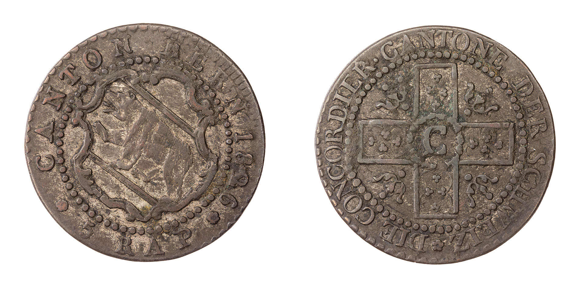 Revers : Avec cercle de grènetis. Écriture : Allemand. Inscription : DIE CONCORDIER•CANTONE DER SCHWEIZ C
