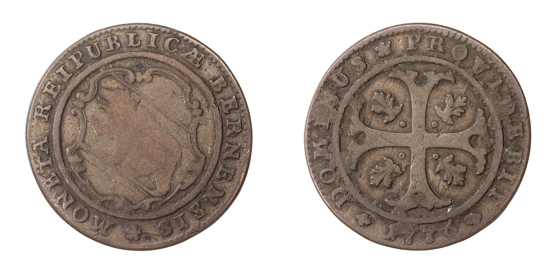 Collection Monnaies et médailles Item Pièce de un demi batzen, 1776 Document ½ batzen, 1776 Download Metadonnées Thumbnail Description½ batzenDénominationPièce de un demi batzen, 1776Année1776Autorité émettriceVille de BerneAtelier monétaire-Poids1,58 gDimensions (hauteur / largeur)23,28 mmÉpaisseur0,54 mmOrientationMonnaie (tête-bêche)CompositionBillonRéférencesDivo-Tobler 1974, n°525Frappe-RemarquesAvers : Blason avec un ours. Écriture : Latin. Inscription : MONETA REIPUBLICÆ BERNENSIS * Revers : Croix échancrée avec quatres feuilles sur un point. Écriture : Latin. Inscription : DOMINUS PROVIDEBIT 1776 Voir : https://fr.numista.com/catalogue/pieces17835.htmlNuméro de cotePièce_Mand_0063 Continuer à naviguer Pièce de un demi batzen, 1718 Pièce de un demi batzen, 1753 Back to items list