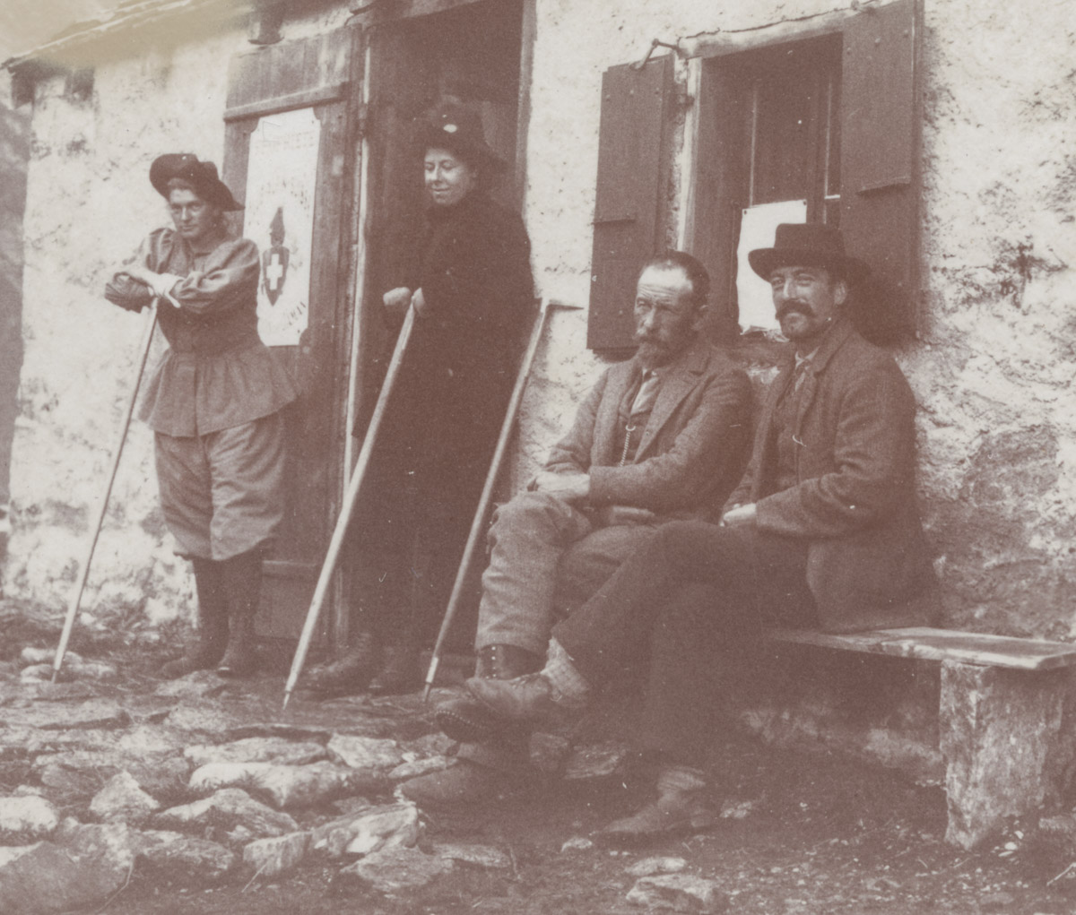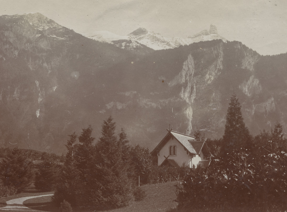 La colline de Chiètres est associée à plusieurs histoires bien connues, en grande partie grâce à ses nombreux propriétaires, parmi lesquels la famille Louguinine, établie à Bex vers 1875. Nadine, fille cadette de Wladimir et de Marthe, développe une passion précoce pour les montagnes chablaisiennes qui l’entourent dès ses 16 ans, transformant ces sommets en son terrain de jeu privilégié. Tout au long de ses nombreux séjours à Bex, elle explore presque tous les sommets des Alpes vaudoises et valaisannes, bénéficiant de la compagnie de guides renommés, parmi lesquels figure son ami, le guide Jules Veillon des Plans-sur-Bex. Un grand nombre de ces courses seront documentées à travers des récits photographiques que Nadine compilera dans plusieurs albums.