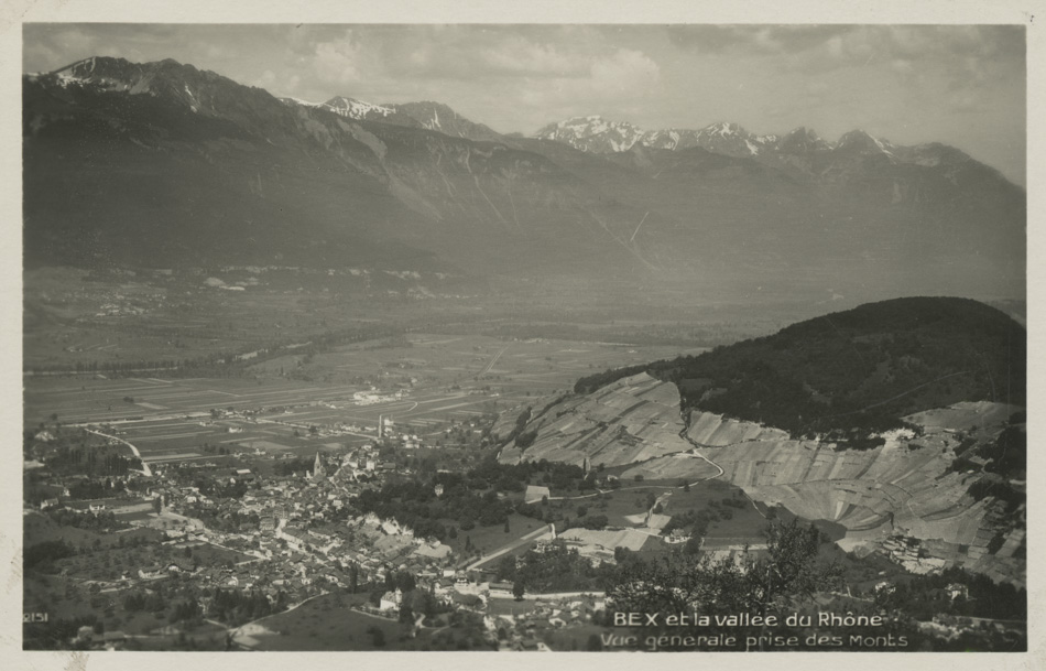Bex et la vallée du Rhône. Vue générale prise des Monts